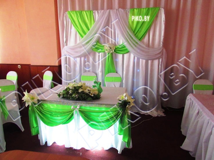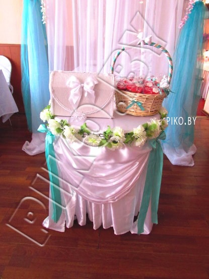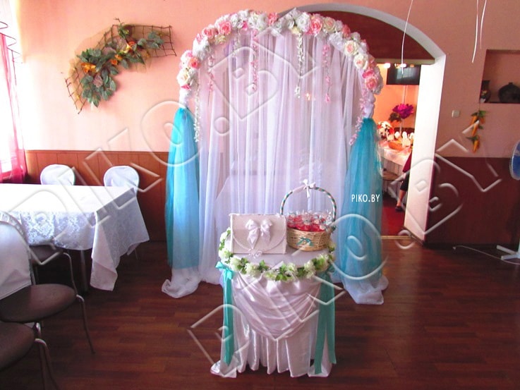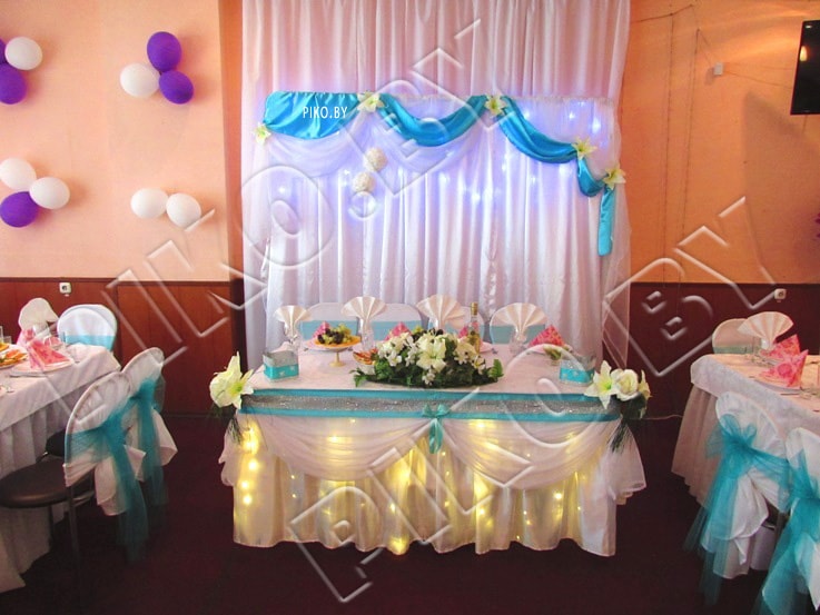 Бирюзовый цвет в оформлении свадебного зала символизирует свежесть и легкость в жизни, создание новой непорочной семьи.