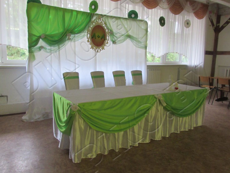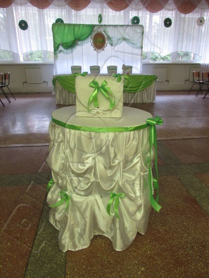 Сочная молодая зелень, весенние цветы – это первые ассоциации с салатовым цветом, цветом новой зарождающейся жизни. Не зря день бракосочетания называют зеленой свадьбой. Выбрать этот яркий, и в то же время, нежный цвет для украшения свадебного зала – прекрасная идея. Салатовый цвет будет незаменимым и для тех, кто желает оформить зал для торжества в одном из самых модных сейчас – эко-стиле.