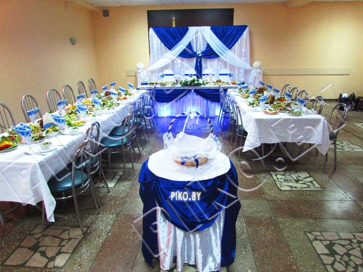 В здании несколько банкетных залов, данное кафе-столовая располагается на первом этаже. Зал просторный, помещение светлое с нейтральным интерьером, поэтому украшение зала можно выполнять в любом цвете. На фото видно, что зона гостей не декорировалась, исправит ситуацию аренда чехлов на стулья в Минске.