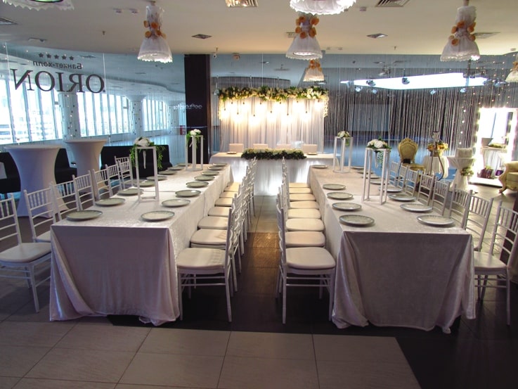 Зал для проведения банкетов Orion принимает гостей на 6 этаже здания. Отдельная уединенная площадка даёт возможность праздновать так, как захочется, не боясь потревожить других людей.